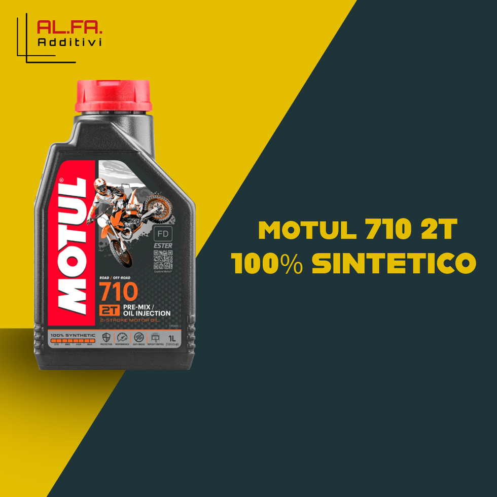 Motul 710 2T è un lubrificante 100% sintetico a base Estere, sviluppato per motori ad elevate prestazioni e ad alto numero di giri; la perfetta tenuta del film lubrificante assicura un’ottima protezione anti usura. Miglioramento della potenza in uscita e riduzione degli attriti all’interno del motore. La specifica giapponese JASO Fx fa riferimento al superamento di quattro test al banco al fine di valutare il potere lubrificante, detergente, anti fumo e anti depositi. Il livello FD, il più alto della specifica JASO, garantisce un maggiore potere detergente, per una perfetta pulizia del motore, rispetto a quello relativo alla specifica JASO FC. La base sintetica estere ad alto potere di combustione riduce la formazione di fumo e depositi